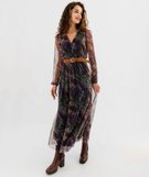 Illuminez vos soirées avec cette robe femme scintillante ! Longue et fluide, cette robe manches longues est idéale pour une tenue de fête. Conçue en maille froissée multicolore et brillante, elle est entièrement doublée pour plus de confort, sauf aux pour un subtil jeu de transparence. Le col V et la taille marquée par un élastique accentuent la silhouette. Vous allez adorer ses manches blousantes avec fronces aux épaules et élastiques aux poignets. Osez la porter avec des boots à épaisse semelle crantée et une veste courte pour une touche rock irrésistible.