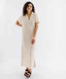 Cette jolie robe LuluCastagnette s’inscrit dans la tendance bohème chic et vous accompagne tout au long de l’été avec élégance et décontraction. Une robe longue à manches courtes sans coutures aux emmanchures confectionnée dans une maille fantaisie légèrement ajourée offrant un élégante transparence. Cette robe femme possède un col polo en bord-côte avec décolleté en V très élégant. Fendue sur un côté pour faciliter la marche, elle offre un maximum de confort. Une robe droite à porter en mode loose avec des sandales plates ou avec une jolie ceinture et des sandales à talons. Logo en métal cousu dans le bas.
