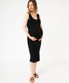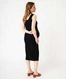 Robe longue de grossesse en maille côtelée avec boutons décoratifs noir
