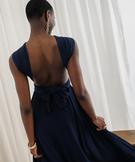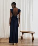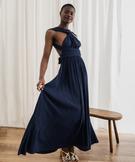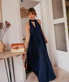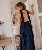 Robe longue dos nu multilook en viscose froissée femme bleu/navy