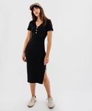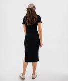 Robe longue en maille côtelée à manches courtes femme noir