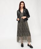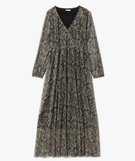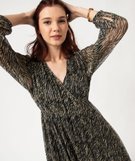 Une sublime robe longue idéale pour créer une tenue de soirée glamour ! Cette robe pour femme présente une coupe flatteuse et une confection originale et féminine. La robe à manches longues est dotée d'un haut cache-cœur avec taille empire. Sa matière est un voile imprimé d'un motif d'inspiration zèbre, finement plissée et relevé de touches de brillance pailletée. Le buste et les jambes sont doublés. Mais pas les bras, pour un séduisant jeu de transparence. Les manches sont resserrées aux poignets par un joli bouton. La robe de soirée s’enfile facilement et se porte avec des escarpins et une petite pochette. Pour un look plus audacieux, associez-là à des bottes à talon !