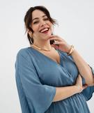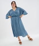 Robe longue en voile satiné à encolure cache-cœur femme grande taille[MISSING] bleu