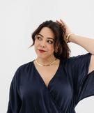 Robe longue en voile satiné à encolure cache-cœur femme grande taille[MISSING] bleu fonce