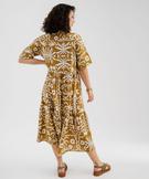 Robe longue et fluide à manches courtes imprimée femme jaune