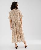 Égayez vos été avec cette superbe robe femme vaporeuse ! Longue et fluide, cette robe manches courtes est aussi féminine que confortable. Conçue en viscose froissée imprimée d'un motif organique, elle affiche une coupe ample avec un volant dans le bas et une taille froncée. La partie haute inspirée de la chemise apporter de la structure à l'ensemble. Col chemise, boutonnière irisée, emmanchures raglan.