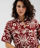 Robe longue et fluide à manches courtes imprimée femme marron