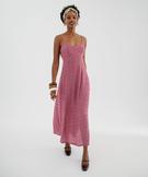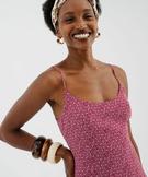 Robe longue fluide et fleurie à fines bretelles femme rose fonce