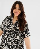 Robe longue imprimée avec col chemise femme grande taille noir