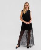 Robe longue sans manches avec empiècement dentelle femme noir