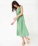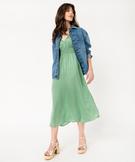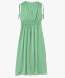 Une sublime robe longue en satin brillant, idéale comme robe de cérémonie ou tenue de soirée. Cette élégante robe femme au toucher ultra doux et aux reflets subtilement brillants est aussi très confortable grâce à sa taille empire avec taille élastiquée et sa belle ampleur. La robe sans manches est équipée de cordons coulissants sur les épaules permettant de moduler la largeur des bretelles. Son grand col V sublime le décolleté. Une robe facile à intégrer dans un look bohème chic avec une paire de sandales plates.
