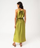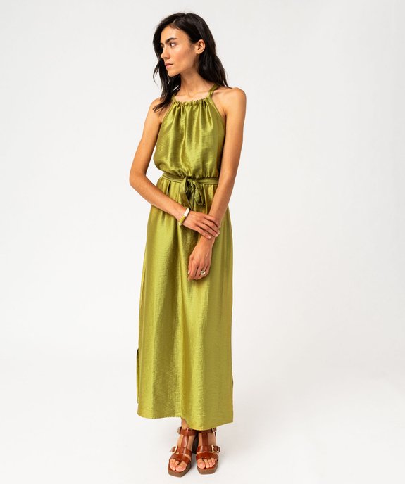 Robe de soirée ou robe de cérémonie, cette robe pour femme vous fera un look absolument reversant ! Vous apprécierez la brillance et la couleur sublime de sa matière, autant que son allure glamour et sophistiquée ! Pourtant, la robe longue affiche une coupe sobre, facile à vivre et confortable avec un lien à nouer dans le cou qui permet d'ajuster l'encolure et l'échancrure des manches à sa morphologie, une taille élastiquée mise en valeur par une ceinture à nouer et une fente dans le bas - sexy et pratique pour marcher.