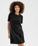 Envie d'une petite robe noire qui a tout bon à tous les coups ? Craquez pour ce modèle raffiné et discret. Cette robe courte présente une coupe droite classique, féminisée par un col rond décoré d'un galon brillant et modernisée par des manches courtes. Pour un tomber impeccable, la robe femme possède des pinces poitrine et sa maille est extensible. Un basique indispensable à porter avec des escarpins et une veste de tailleur courte pour une silhouette bon genre, ou avec une veste en cuir et des boots pour une allure plus glam'rock.