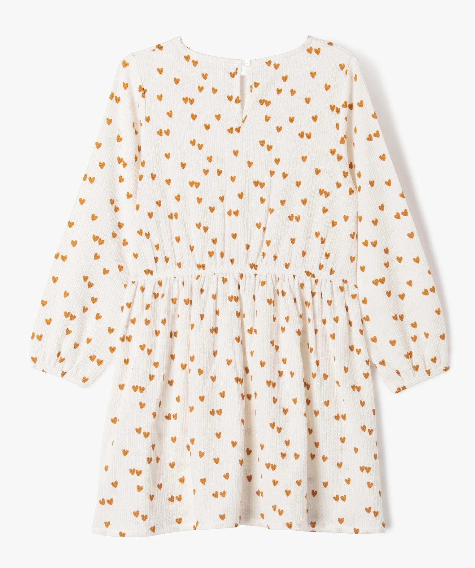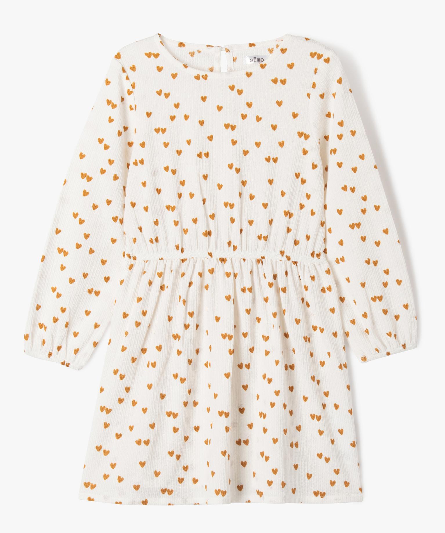 Robe manches longues à motifs fleuris fille blanc