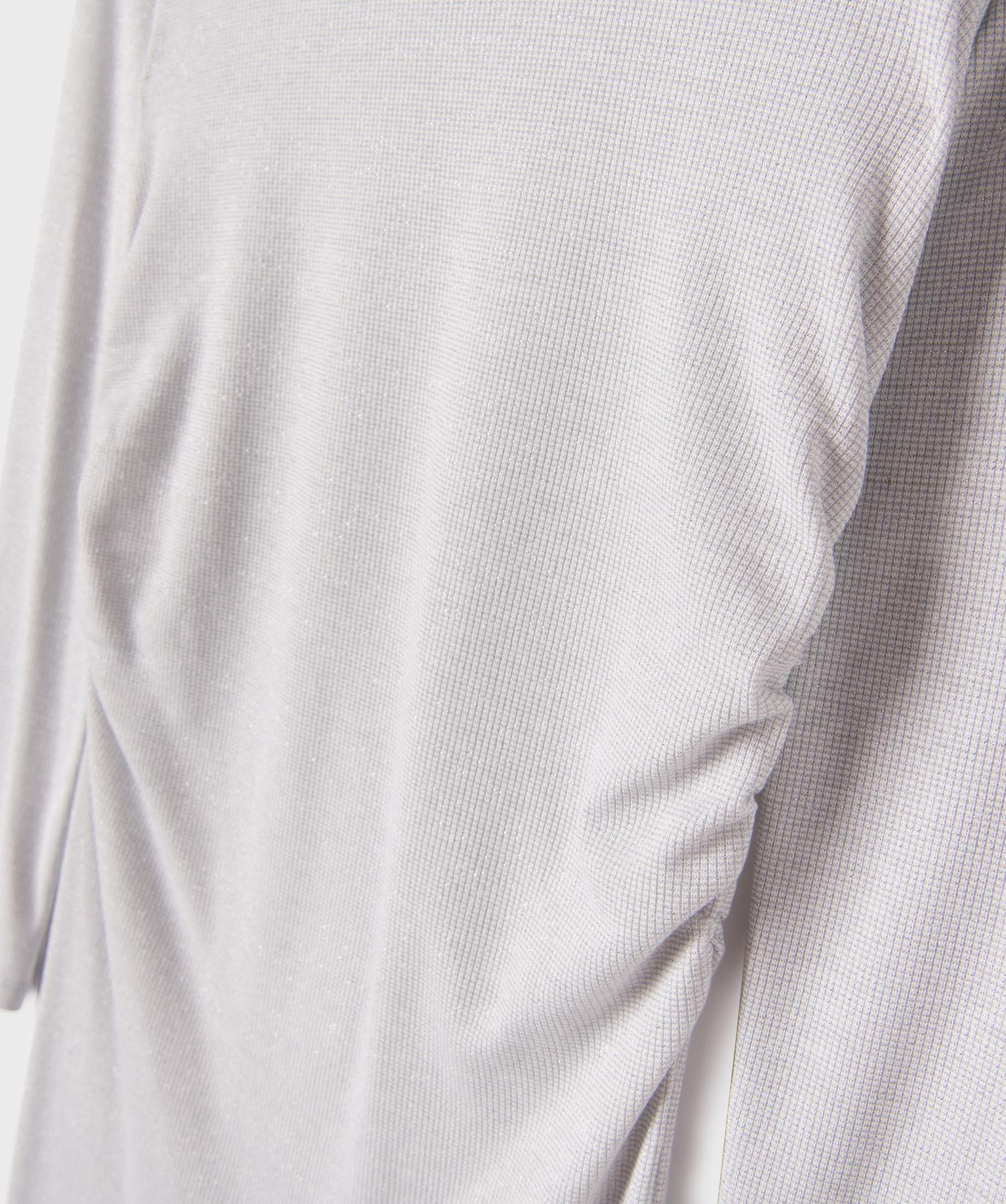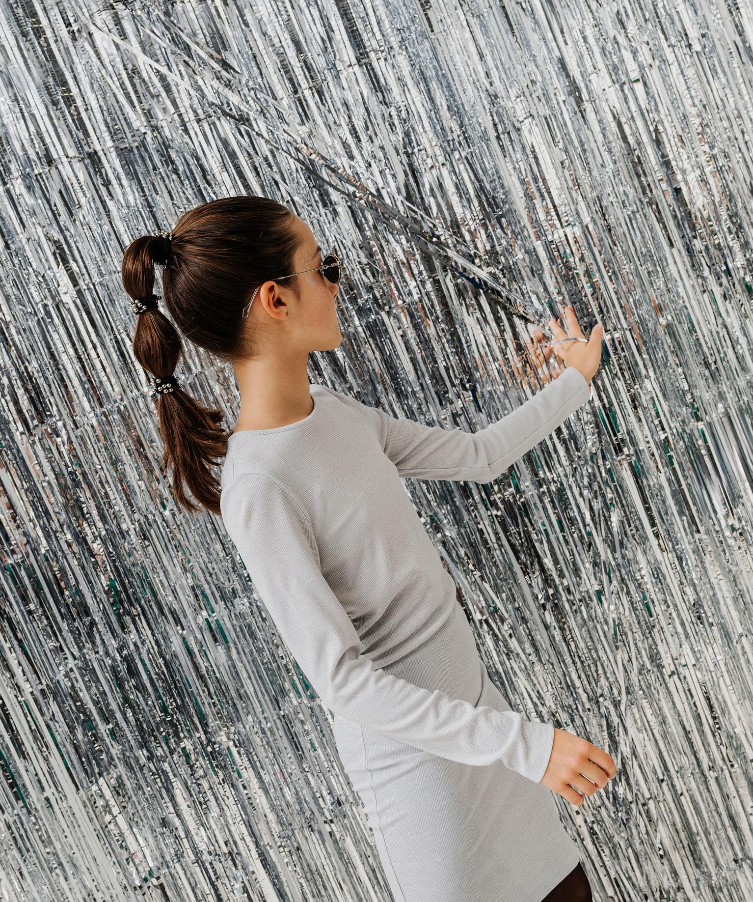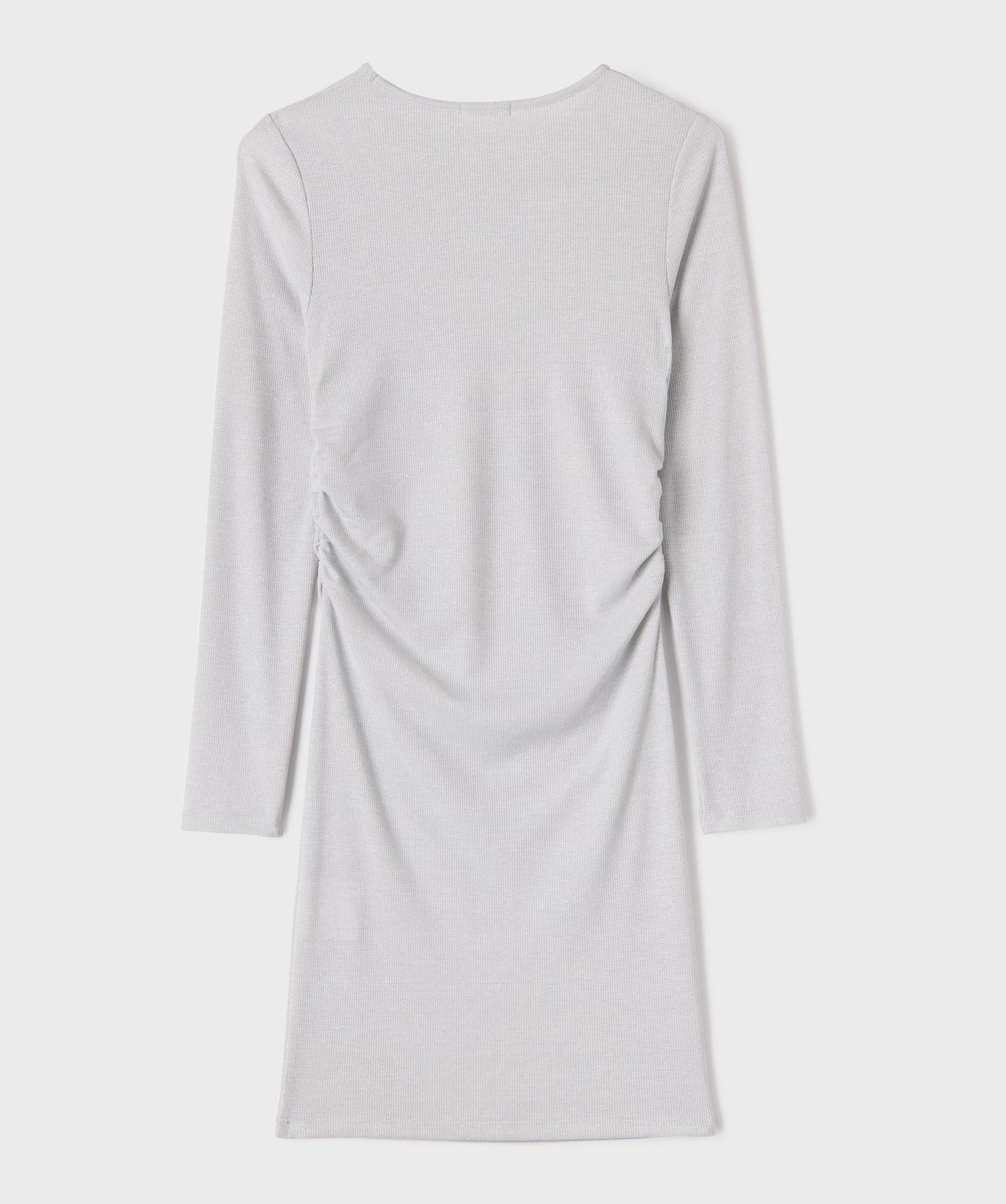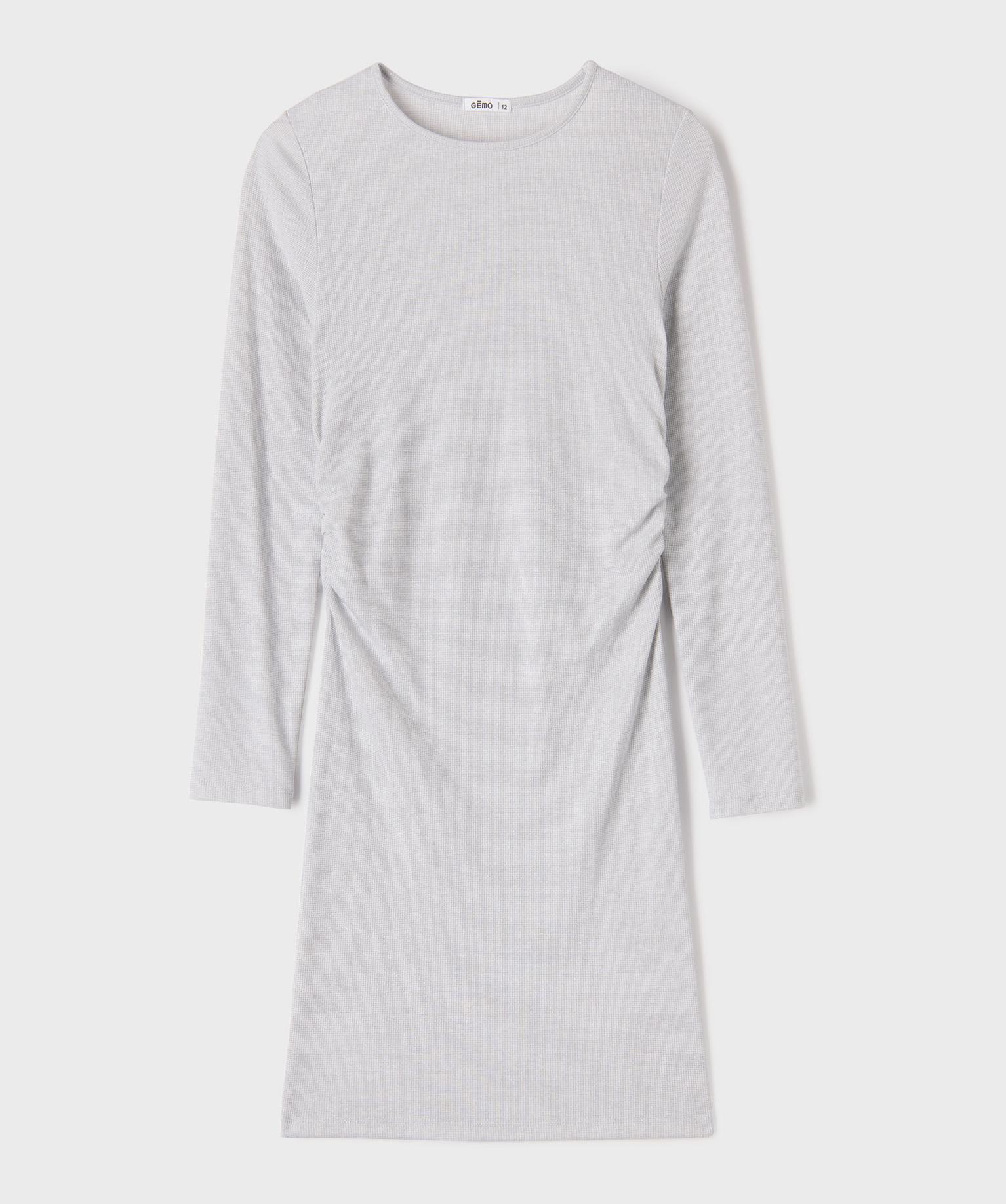 Robe manches longues coupe courte et ajustée en maille pailletée fille argente