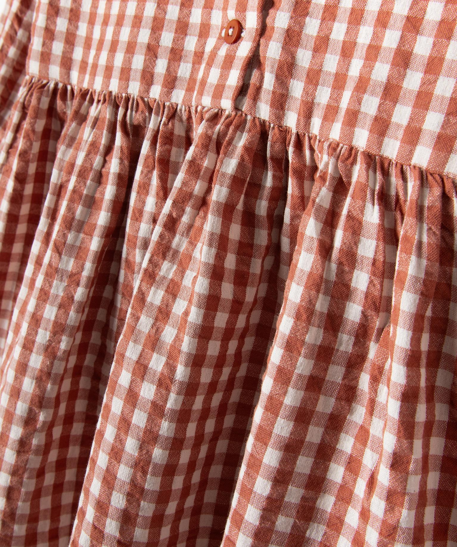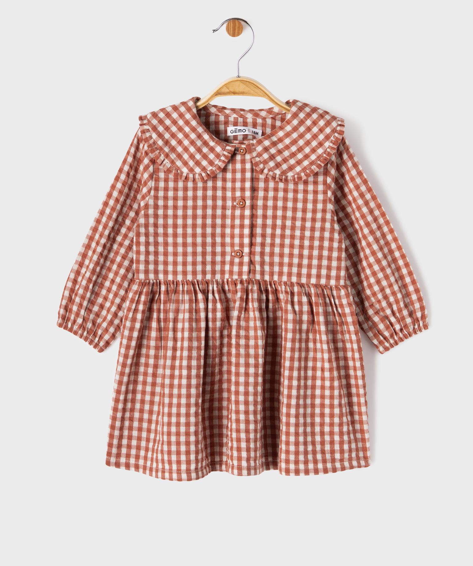 Robe manches longues en coton à carreaux vichy bébé fille marron