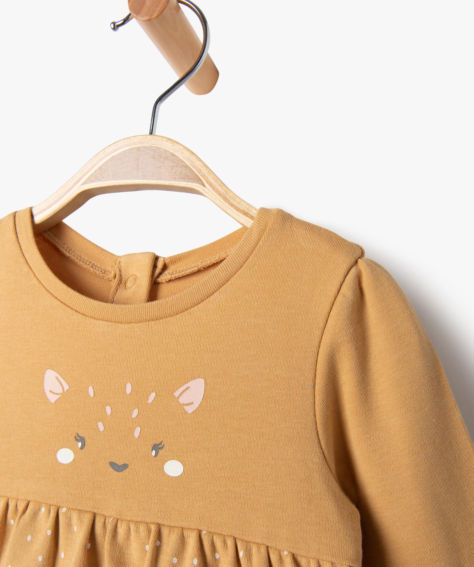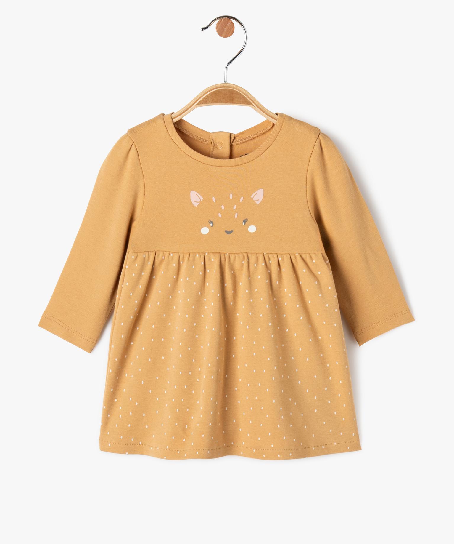 Robe manches longues en maille jersey avec body intégré bébé fille marron vif