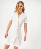 Grâce à sa coupe flatteuse, son allure élégante et sa matière très confortable, cette robe portefeuille ne vous quittera plus ! Cette robe à manches courtes est fabriquée dans une maille toute douce avec une petite touche de stretch qui offre une grande liberté de mouvements. Sobre et chic, elle présente une encolure V avec col à revers façon blazer, une jupe aux pans arrondis, et une fermeture par un bouton et une ceinture à nouer. N'hésitez pas à twister cette robe femme avec une ceinture bijou glissée sous les passants pour la transformer en robe de soirée. 1 bouton intérieur + 1 bouton extérieur pour maintenir les pans. Ceinture à nouer amovible.