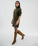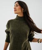 Indispensable du vestiaire hivernal, la robe pull offre à la fois confort et élégance pour affronter l’hiver avec style. Cette robe pour femme est dotée d’un col montant qui enveloppe joliment le cou. Confectionnée dans une maille confortable contenant de la laine, elle garantit une chaleur réconfortante. Elle se distingue par une couture verticale en relief sur l’avant, ajoutant une touche de fantaisie. Cette robe en maille affiche une coupe droite convenant à toutes les silhouettes et des épaules tombantes qui lui confèrent une allure loose. Une pièce à porter avec une paire de bottes et un long manteau.
