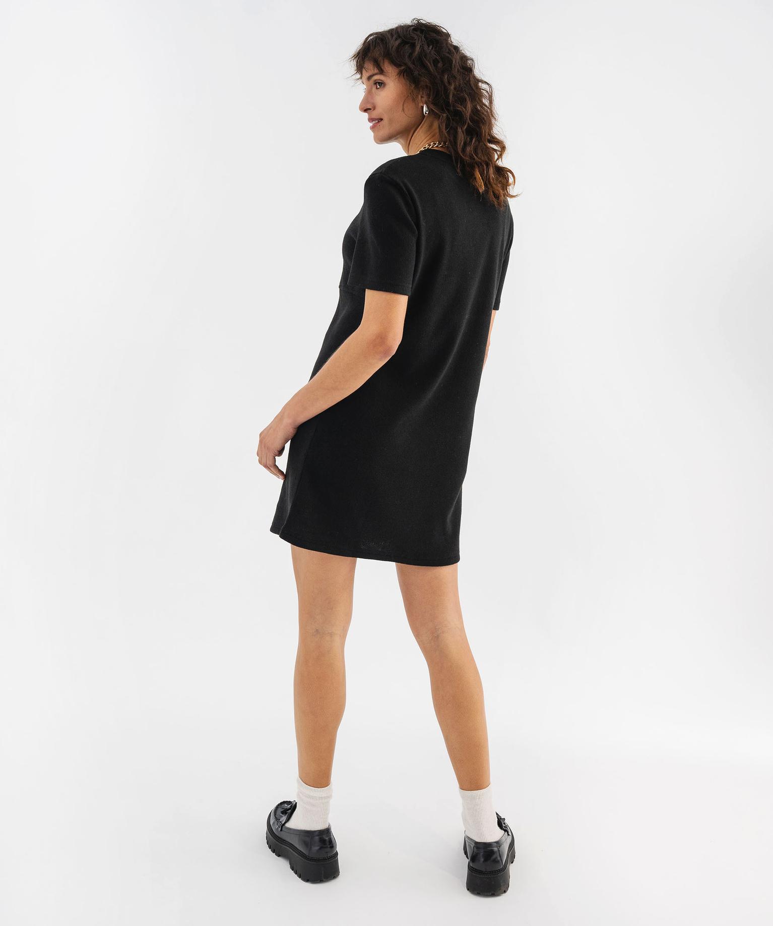 Cette jolie robe pull à manches courtes séduit par son allure vintage inspirée de la mode des années 60. Elle arbore un col rond légèrement montant et une coupe trapèze soulignée par une surpiqûre sous la poitrine et une autre, verticale, sur la partie jupe, qui lui confère un style graphique. Une robe pour femme à porter avec une paire de bottes pour jouer la carte rétro jusqu’au bout.