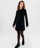 La robe pull fait désormais partie des indispensables du vestiaire hivernal. Ce modèle se démarque par sa coupe légèrement évasée dans le bas, aussi élégante que confortable. Elle possède un col rond en bord-côte et de larges revers aux poignets, ajoutant une touche de sophistication. Confectionnée dans une maille confortable contenant de la viscose, cette robe femme offre un tombé impeccable sans se déformer au fil des portés. Elle sera mise en valeur avec une paire de bottes.