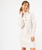 Robe pull en grosse maille à torsades et col boutonné femme - LuluCastagnette beige