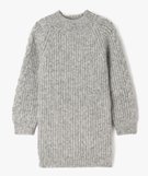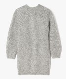 Robe pull en maille côtelée à col montant fille gris