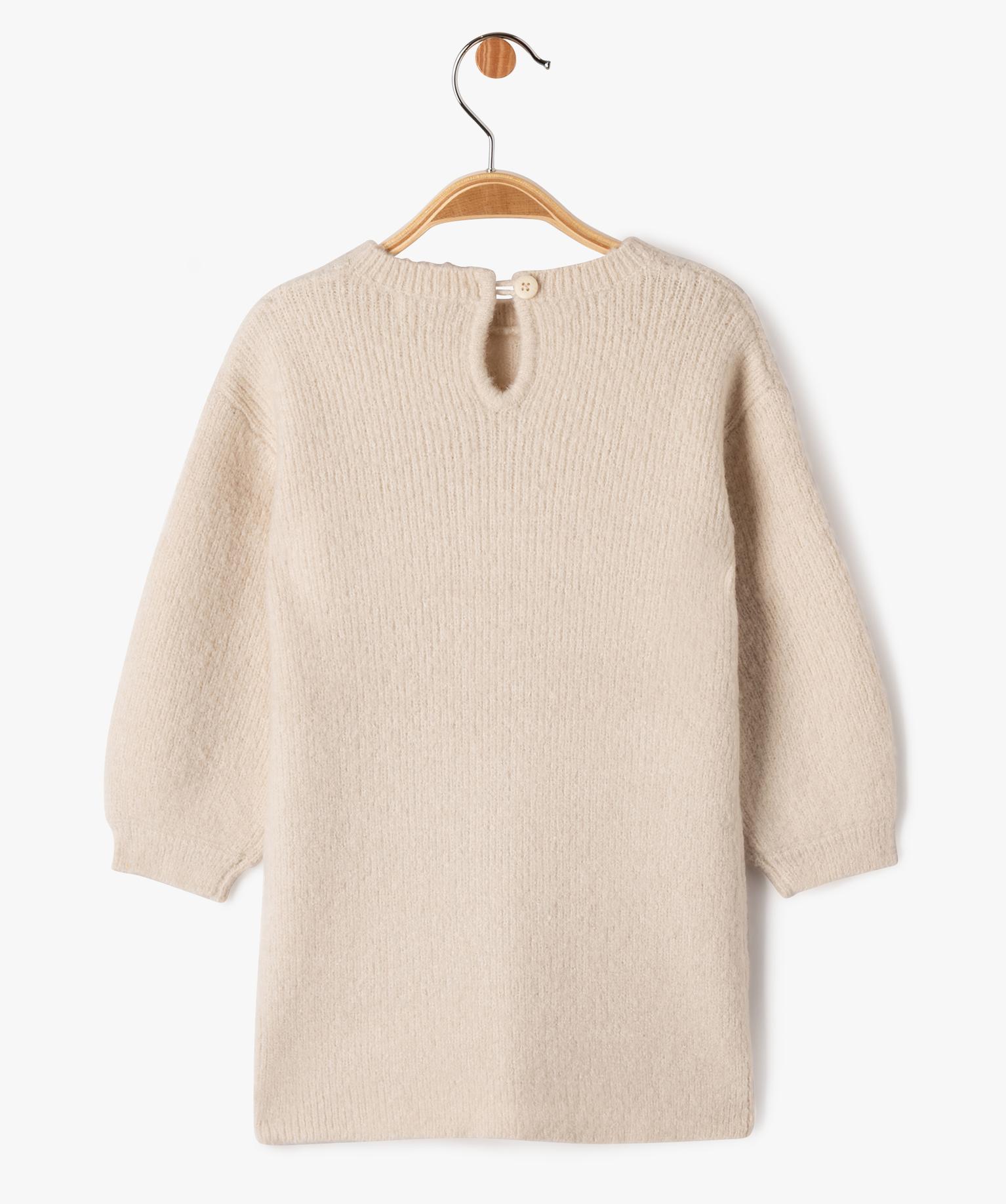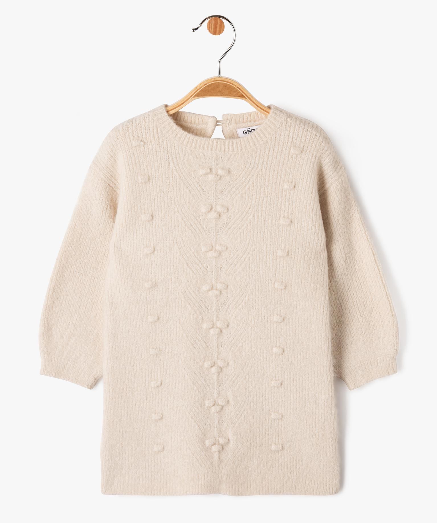 Robe pull en maille douce à relief bébé fille beige fonce