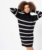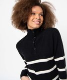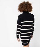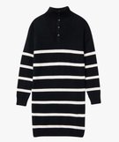 La robe pull s’affiche cette saison dans une version d’inspiration marine avec ses larges rayures. Une robe droite avec col montant en maille côtelée, fermé par une rangée de boutons fantaisie. Cette robe femme ultra confortable, se porte aussi bien avec une paire de boots qu’avec des baskets pour un look à la fois décontracté et féminin. Finitions en bord-côte non resserrées aux poignets et dans le bas.