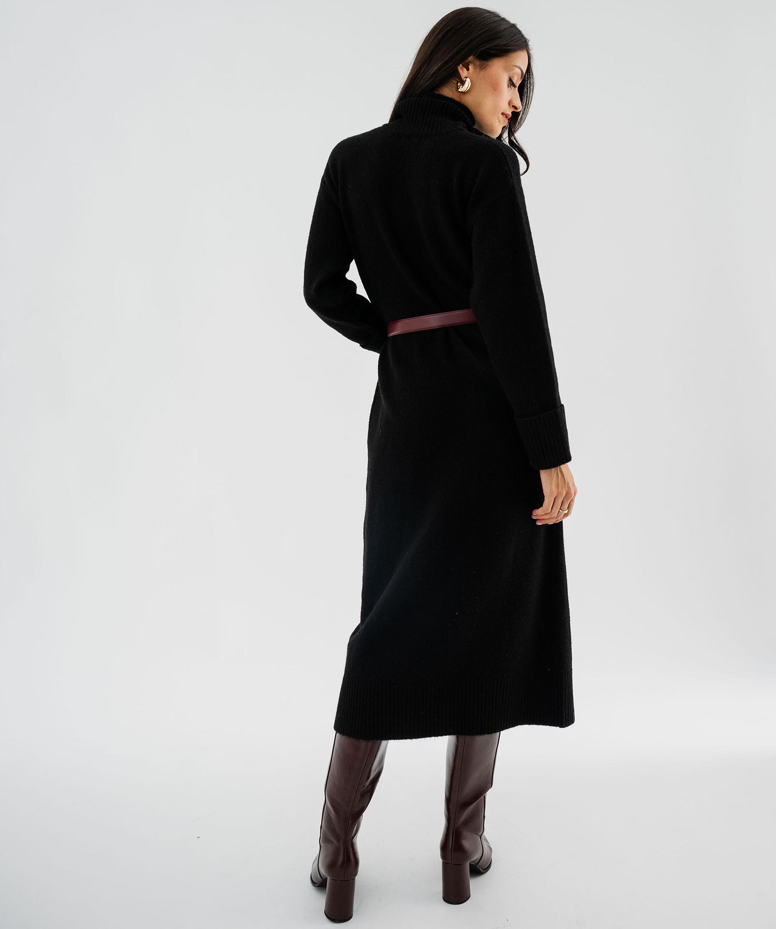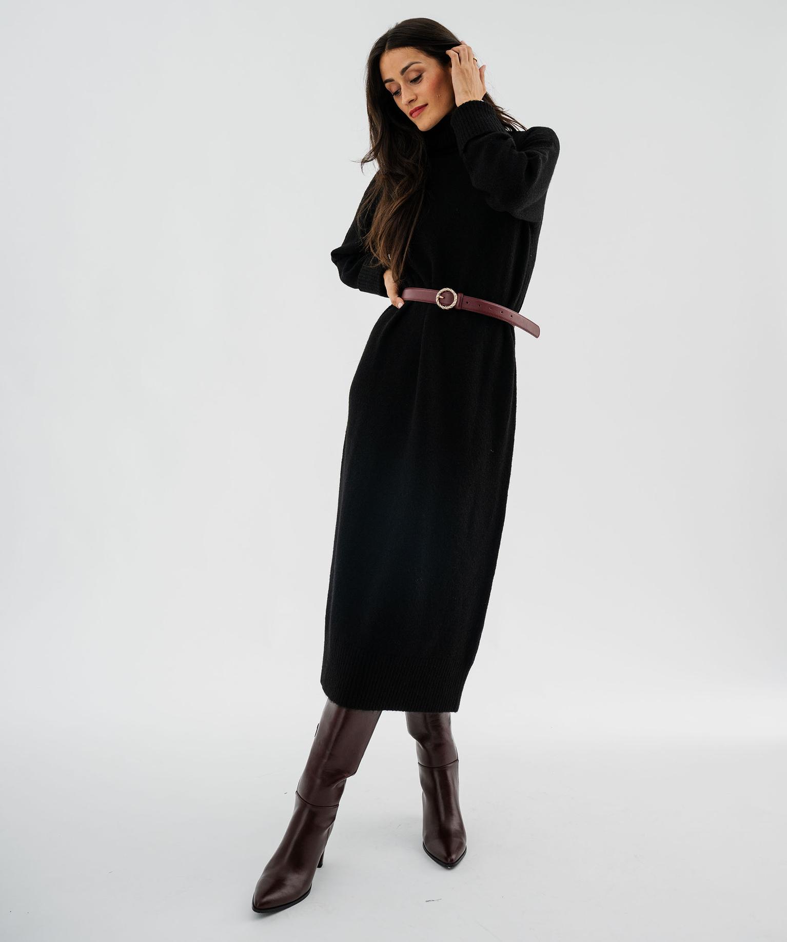 Cette robe pull pour femme allie à la perfection confort et élégance, une pièce indispensable du vestiaire hivernal ! Cette robe longue, tricotée dans une maille douce contenant de la laine, offre un confort douillet et une chaleur réconfortante. Le col roulé, les revers aux poignets et le bas sont en large bord-côte. Elle se porte avec une paire de boots ou des baskets.
