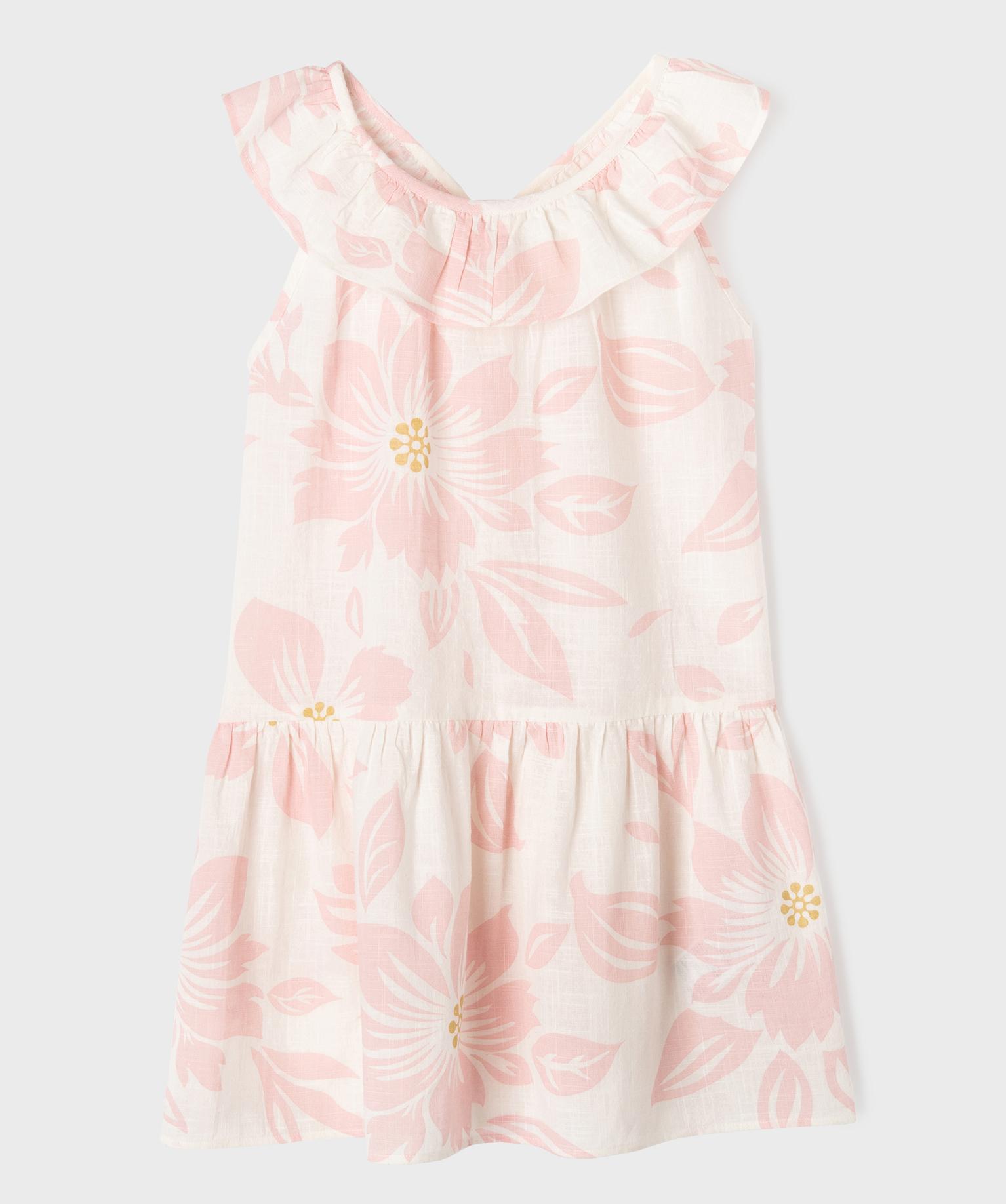 Robe sans manches à volants en voile de coton fleuri fille rose