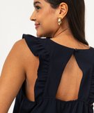 Robe sans manches à volants et dos ouvert femme bleu fonce