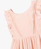 Pour les grandes occasions estivales ou pour une silhouette girly au quotidien, découvrez cette ravissante robe pour fille. Vaporeuse et agréable à porter, la robe sans manches est confectionnée en viscose froissée à plumetis traversée de fines rayures dorées. On adore le volume girly apporté par les volants de part et d'autre du buste et la partie jupe asymétrique. La robe possède un col rond devant et en V au dos. Pour plus de confort, une bride élastique complète l'encolure V au dos. La taille est marquée par des fronces, l'avant du buste par des plis plats. Une robe scintillante à porter pour une cérémonie avec des sandales ou des ballerines dorées.