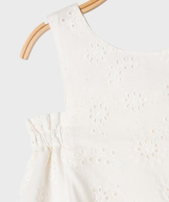 Elle a un charme fou, la robe en broderie anglaise ! Une robe sans manches en voile de coton ajouré de motifs fleuris et doublé, agrémentée d'élastiques de chaque côté du buste. Elle se distingue par ses larges bretelles droites, son col V au dos prolongé d'un bouton et d'une fente en goutte et par sa forme blousante. La robe bébé fille est en effet élastiquée dans le bas, de sorte à froncer sa belle ampleur et à créer un effet bouffant. Girly à souhait... et parfaite comme tenue de cérémonie.