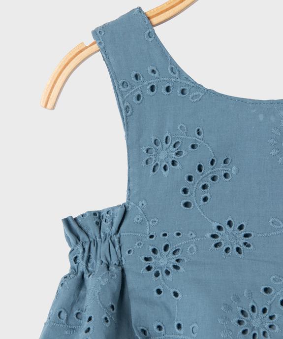 Elle a un charme fou, la robe en broderie anglaise ! Une robe sans manches en voile de coton ajouré de motifs fleuris et doublé, agrémentée d'élastiques de chaque côté du buste. Elle se distingue par ses larges bretelles droites, son col V au dos prolongé d'un bouton et d'une fente en goutte et par sa forme blousante. La robe bébé fille est en effet élastiquée dans le bas, de sorte à froncer sa belle ampleur et à créer un effet bouffant. Girly à souhait... et parfaite comme tenue de cérémonie.