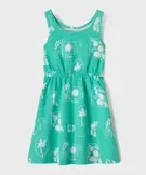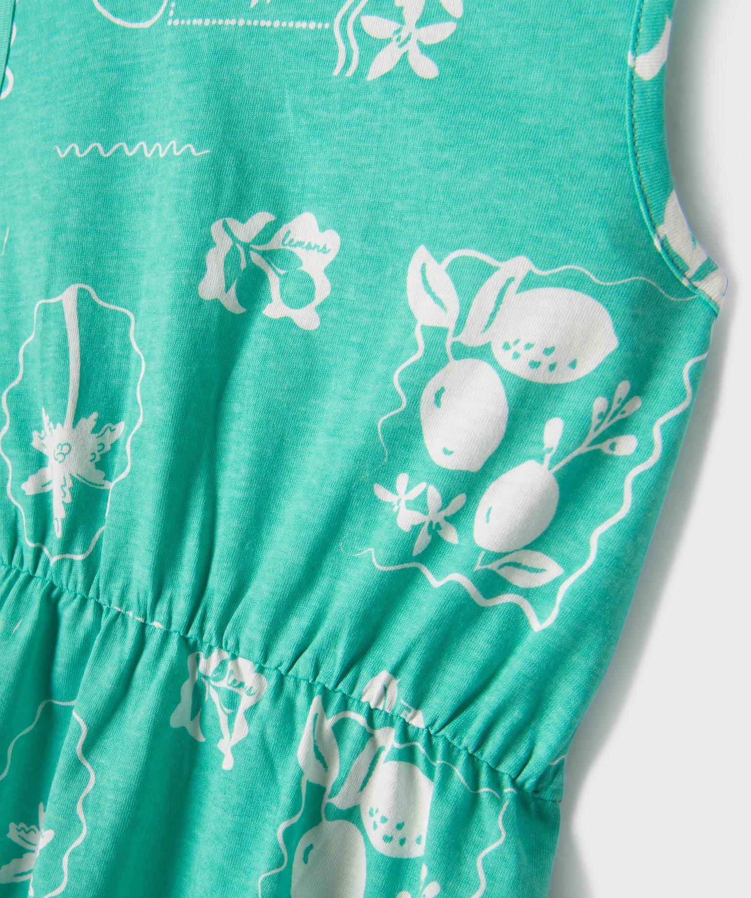 Cette robe fille en jersey de coton imprimé séduit par sa simplicité et sa praticité. Sans manches, avec un décolleté rond devant et dos, elle est resserrée à la taille par un élastique pour un confort optimal et pour structurer la silhouette. Facile à enfiler, facile à vivre, c’est la robe courte parfaite pour l’école, les vacances ou les journées de jeu, aussi jolie avec des sandales qu’avec des baskets en toile.