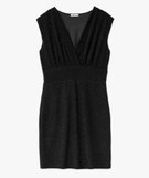 Laissez-vous séduire par cette sublime robe de soirée scintillante ! La robe pour femme est confectionnée dans une maille légère et extensible parsemée de fil pailleté. Cette robe sans manches, courte, fait tout pour mettre votre silhouette en valeur : elle dévoile vos bras et vos jambes, souligne vos hanches, marque votre taille et met l'accent sur votre poitrine grâce à son décolleté sensuel façon cache-cœur. Pour une tenue de fête glamour, portez-la avec des escarpins ou des sandales à talon.