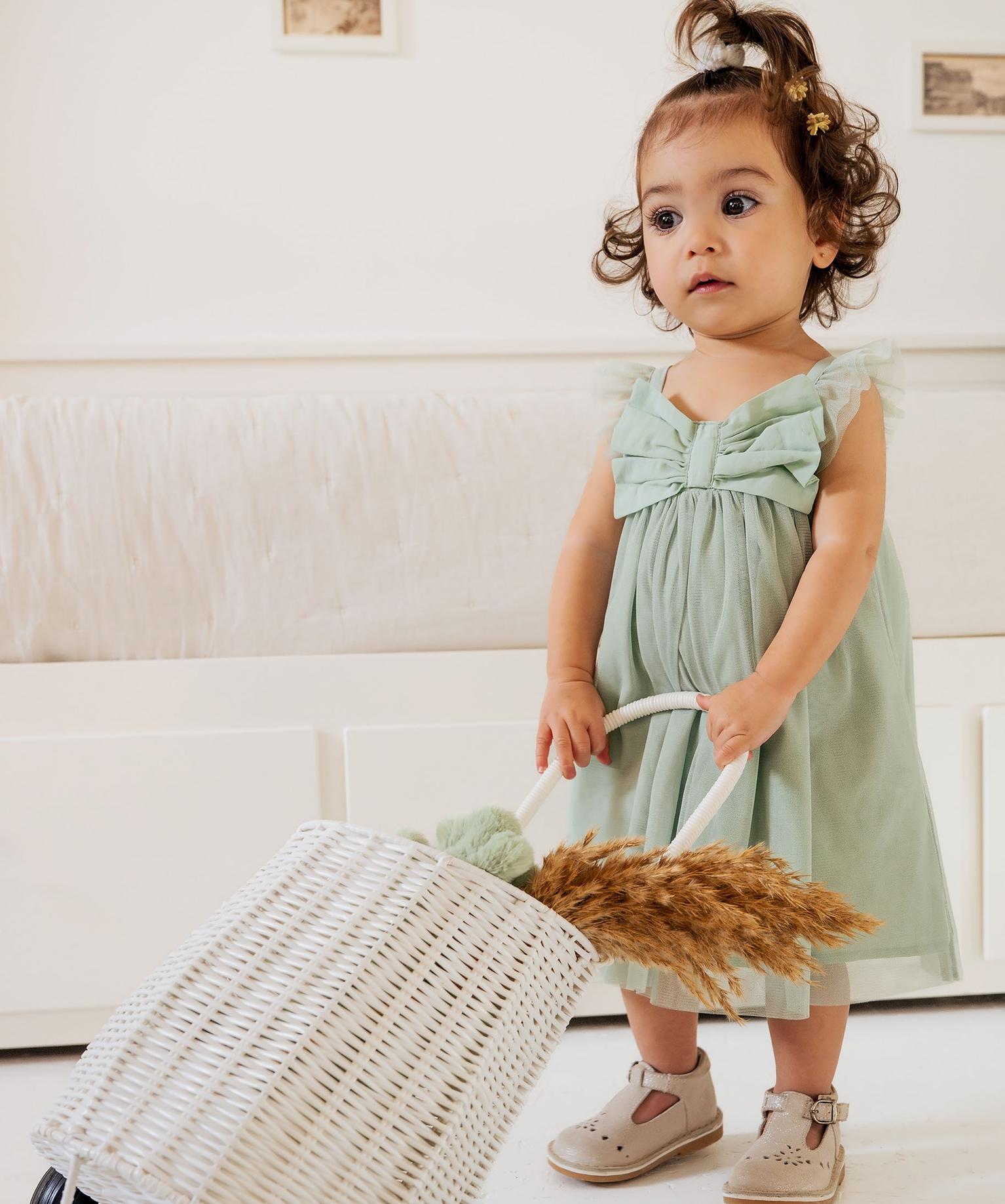Robe sans manches en tulle bébé fille vert clair