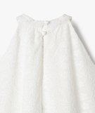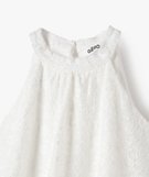 Cette charmante robe sans manches sera parfaite pour accompagner les petites filles lors des grande occasions. Une robe de cérémonie fille confectionnée dans une matière fluide entièrement brodée de fleurs ton sur ton. Elle arbore un col rond et une encolure américaine qui met les épaules en valeur. Elle se porte avec ou sans ceinture, avec des sandales scintillantes pour composer une tenue chic. Fermeture par deux boutons dans le haut du dos.