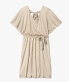 Cette jolie robe scintillante vous permettra de briller lors de toutes vos soirées et cérémonies de la saison. Une robe femme qui sublime le décolleté par son double encolure en V avec liens à nouer dans le dos. Doublée sur le buste et la partie jupe, elle possède des manches chauve-souris transparentes qui mettent le haut du corps en valeur. Cette robe de soirée possède une taille élastique et une ceinture ton sur ton à nouer. Elle se porte avec une paire d’escarpins à talon pour un look chic et glamour.