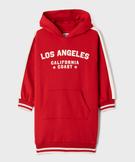 Craquez pour l’allure résolument sportswear de cette robe sweat pour fille. Un modèle original confectionné dans une matière souple ultra confortable avec intérieur molletonné. Cette robe emprunte les codes du sweat avec ses bandes contrastantes sur les manches, ses finitions bord-côte bicolores, sa capuche et sa large poche kangourou. Elle est ornée d’une inscription Los Angeles sur le buste, ajoutant une note collège américain au top de la tendance. Elle se porte avec des collants et une paire de baskets.