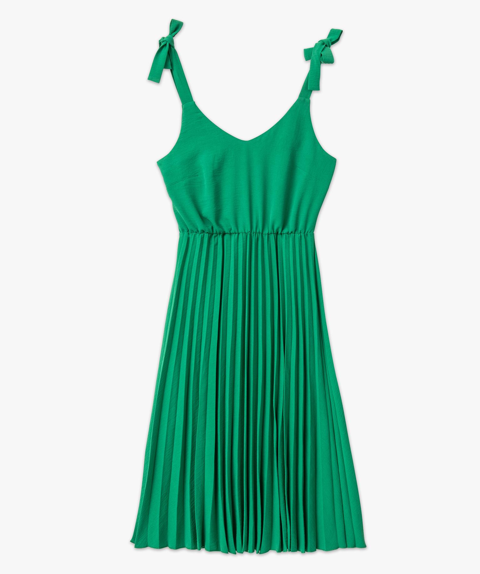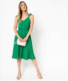 Cette élégante robe midi vous accompagnera tout l'été : robe de cérémonie, robe de soirée, ou meilleure alliée pour un look chic et facile au quotidien. Cette robe est munie d'une partie jupe plissée très tendance et d'une encolure V devant et dos. Les bretelles se nouent sur l'épaule et permettent un ajustement parfait. Dos bien décolleté. Taille élastiquée. Longueur midi.