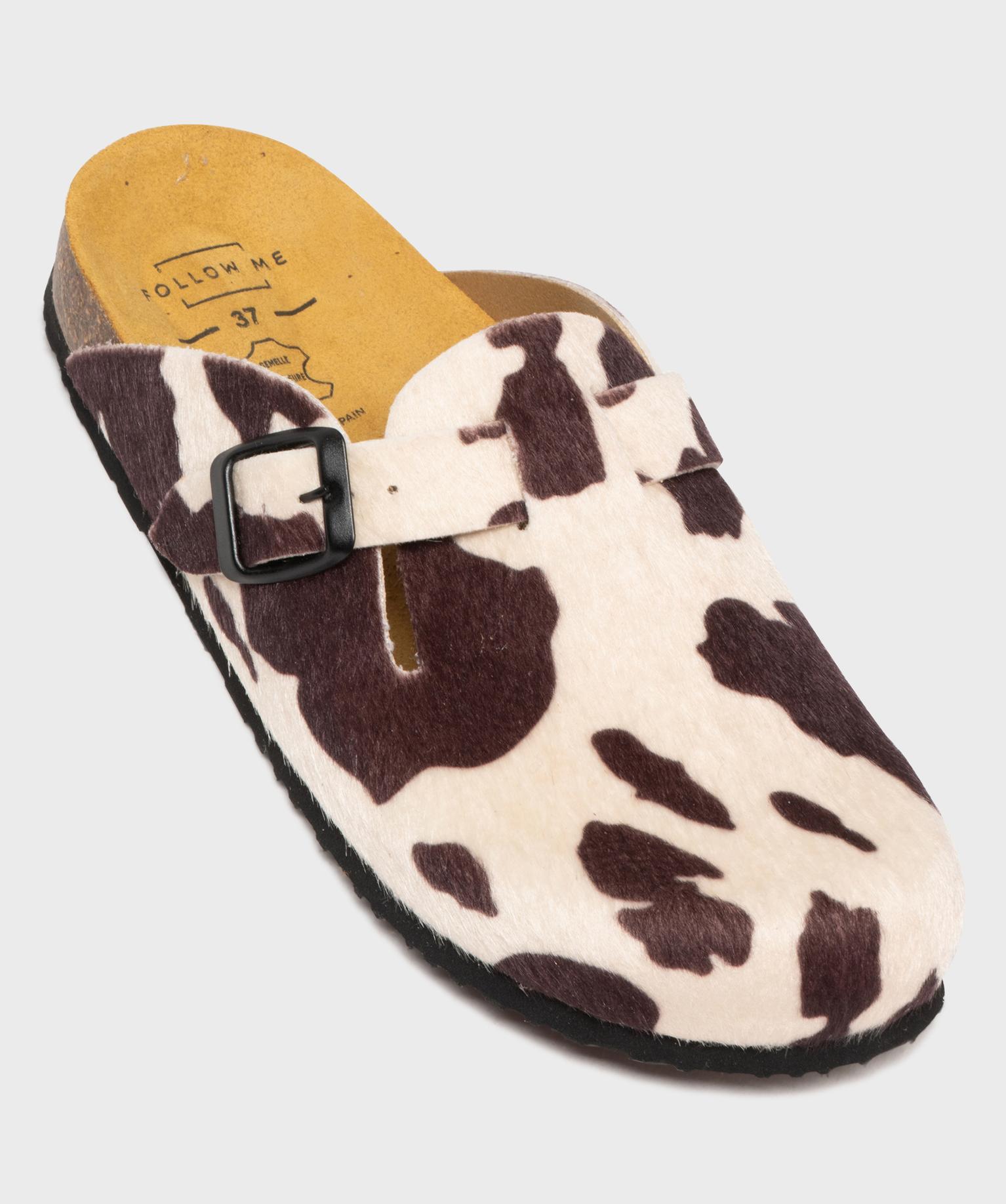 Sabots à semelle intérieure cuir imprimé pelage femme - Follow Me marron