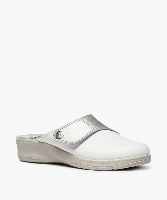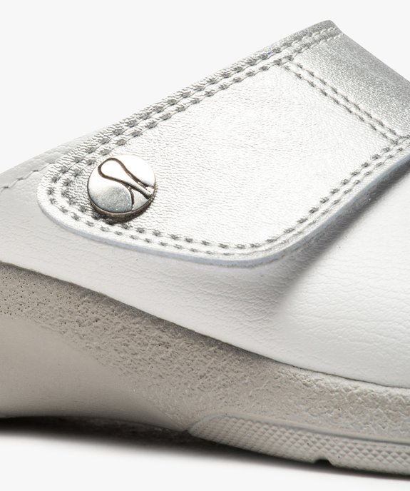Sabots confort femme dessus bicolore ajustable à scratch argente