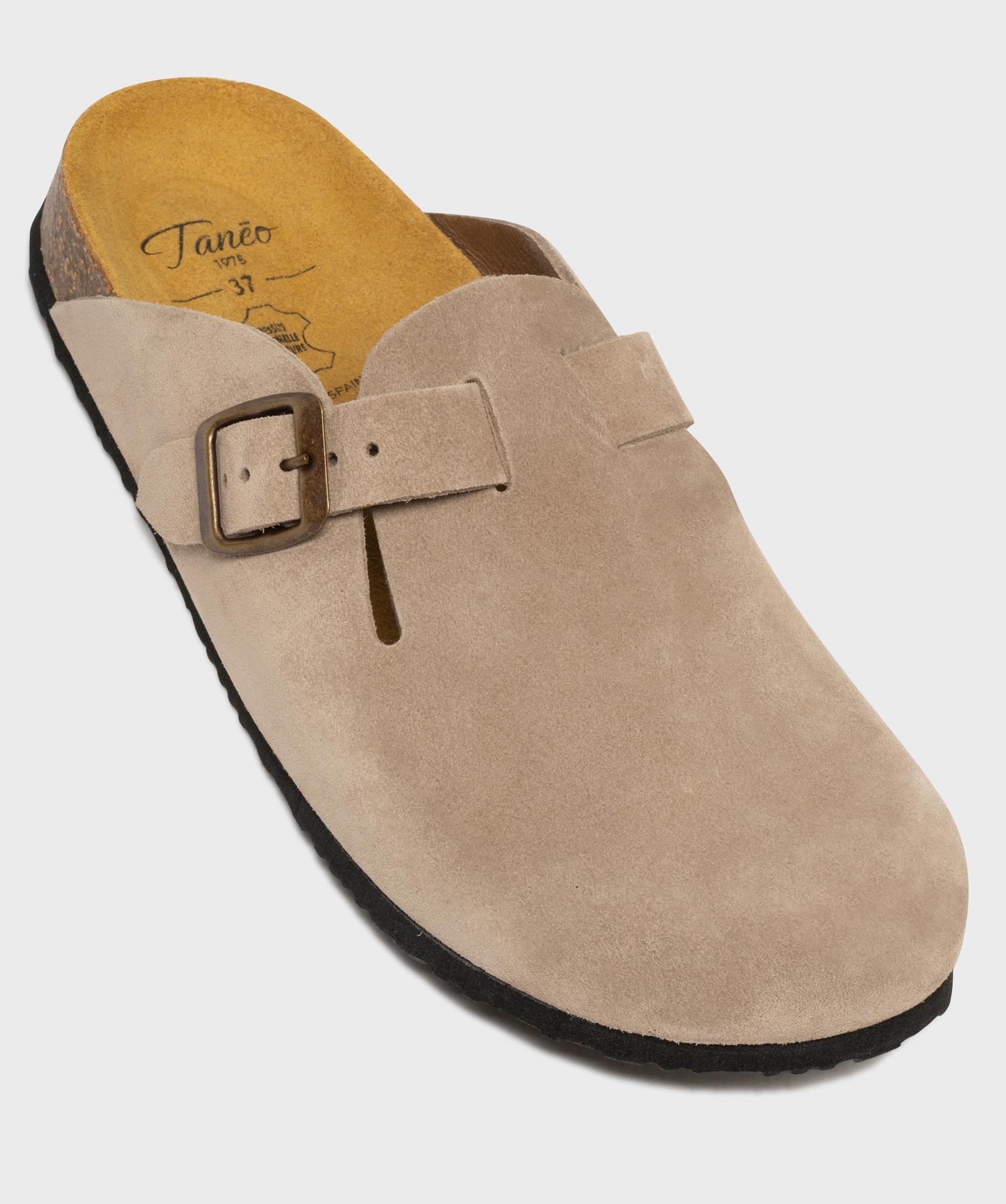 Sabots en cuir suédé avec semelle intérieure anatomique femme beige