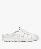 Sabots femme confort à talon compensé imprimés fleurs blanc