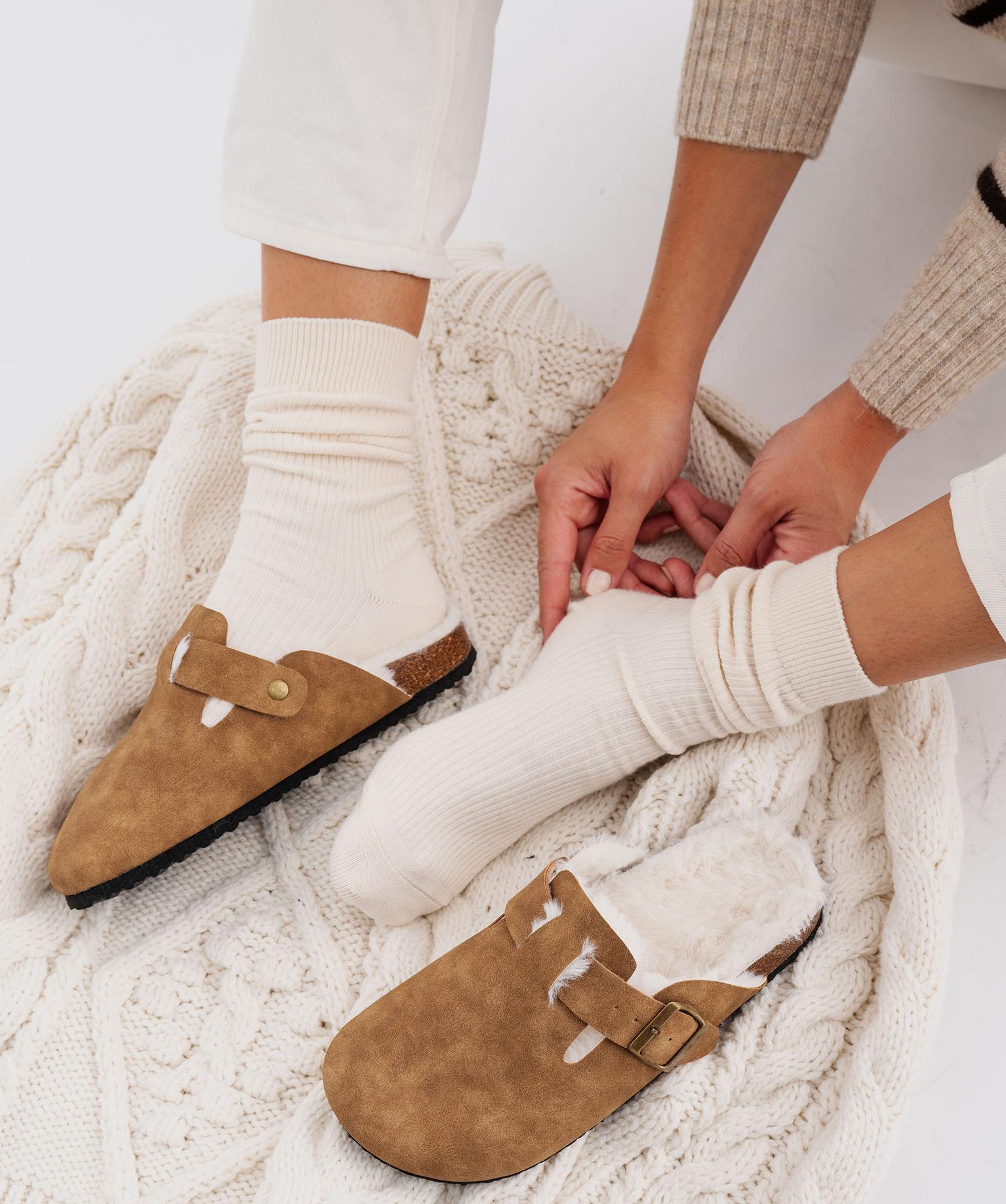 Redécouvrez les sabots en version douillette avec ce modèle fourré ! Les sabots femme parfaits pour des journées cocooning ou les soirées au coin du feu. Le dessus est en suédine douce, rehaussée d'une boucle de réglage en métal vieilli. L'intérieur est en fourrure imitation longue, duveteuse et chaude. Le bout est bien large pour laisser toute la place nécessaire aux orteils !