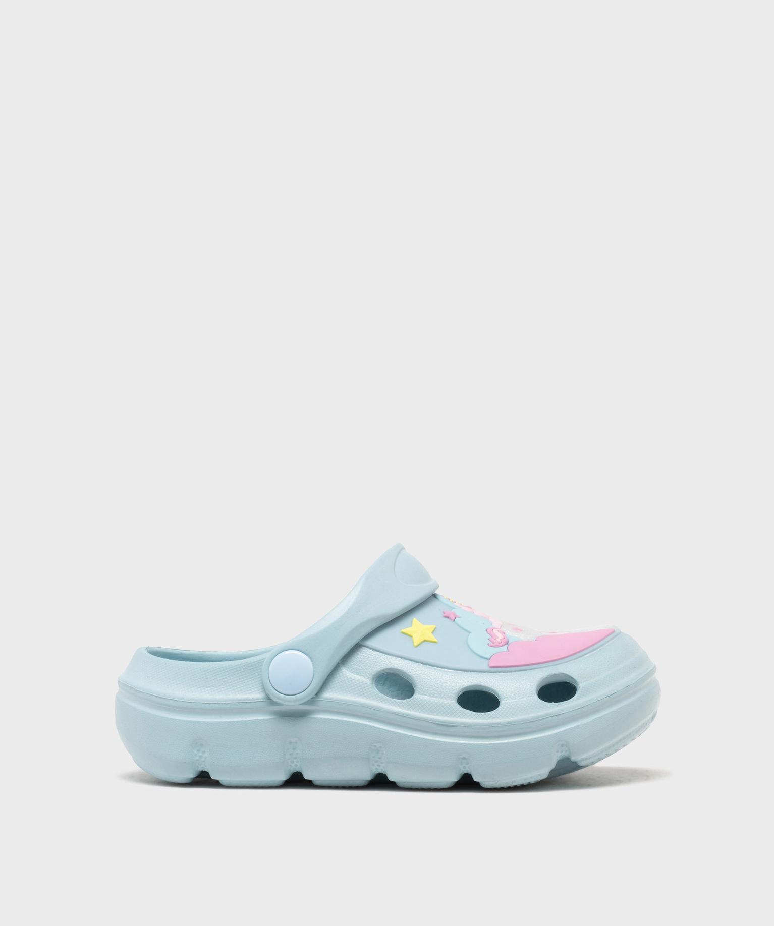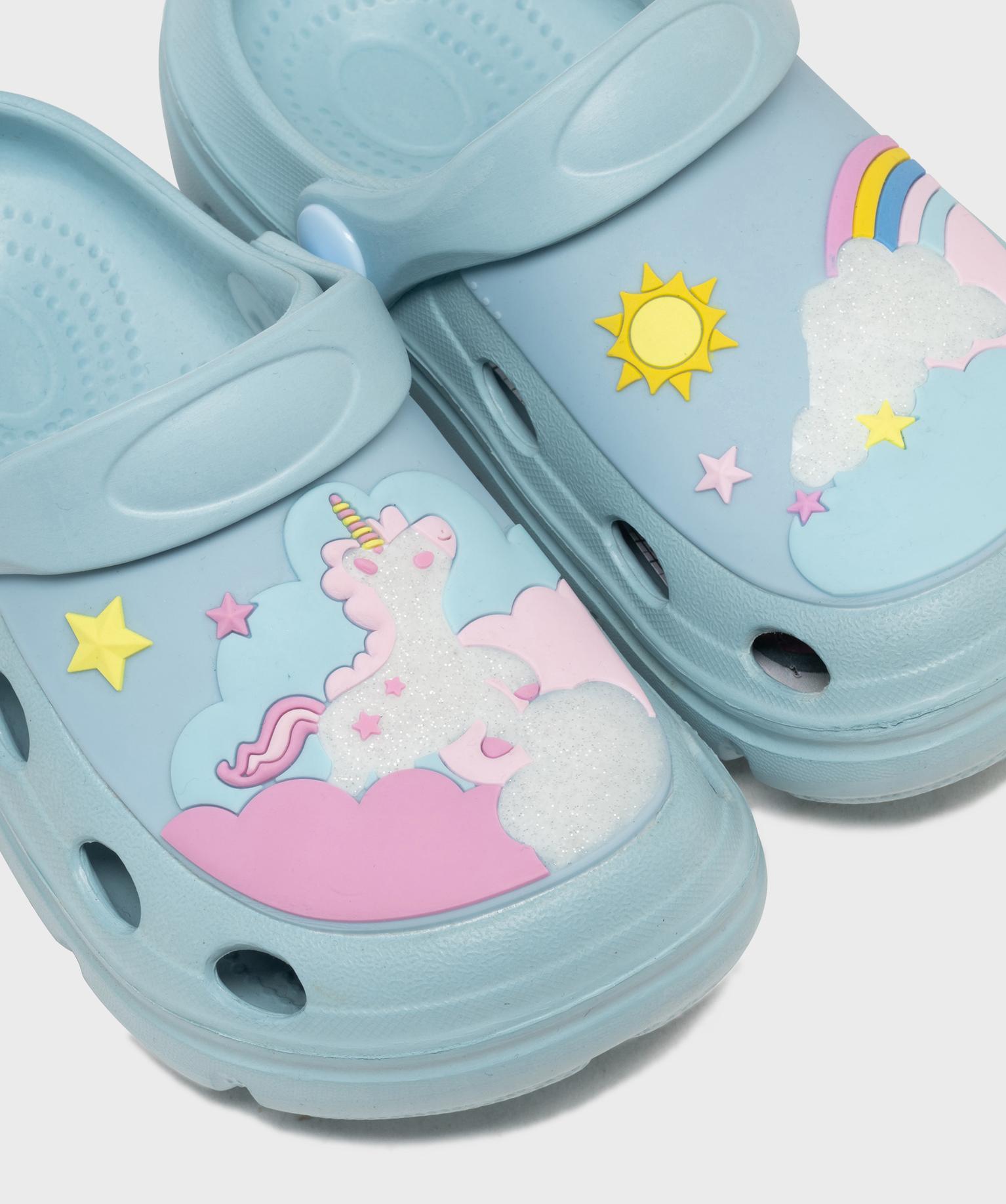 Avec leurs motifs joyeux, ces sabots souples pour fille apportent une touche de fantaisie aux journées d’été. Le dessus perforé est décoré d’un univers coloré mêlant arc-en-ciel, étoiles et soleil, accompagné d’un nuage pailleté plein de charme. Les sabots souples restent pratiques grâce à leur conception légère et résistante à l’eau. Des picots à l’intérieur au niveau de la plante du pied limitent les glissements. La bride rabattable à l’arrière permet d'apporter plus de maintien selon l’activité.