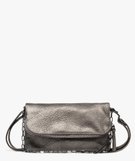 Sac à bandoulière grainé avec anse en chaîne métal gris fonce
