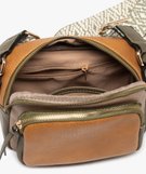 Elégant et pratique ce sac pour femme ajoutera une belle touche de couleur à vos looks. Confectionné dans une matière grainée cuir imitation, il mixe avec style trois coloris différents et se distingue par sa large bandoulière en toile tissée. Ce sac à main possède deux compartiments zippés avec pampille sur le curseur, une poche zippé au dos et deux pochettes intérieures. Un sac à bandoulière au format compact idéal pour le quotidien.
